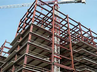 ● સ્ટીલ બીમ અને ક umns લમ: આ બિલ્ડિંગના પ્રાથમિક લોડ-બેરિંગ તત્વો બનાવે છે.
